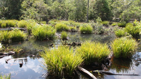 Many different wetlands help retain freshwater in the landscape. From mountains to the sea, extensive upland peatlands, streams and marshes, mid-reach floodplains and lakes, and lowland mangroves are all key wetland types that play a role in regulating water supply to ensure water security and reduce the risk of natural hazards.